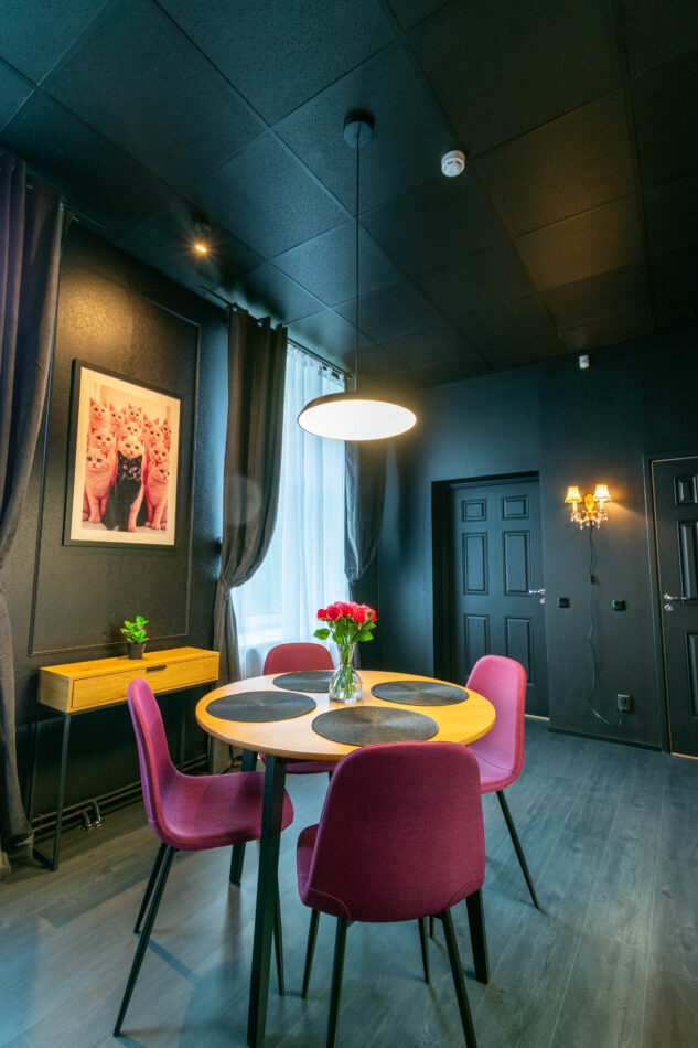 Interjöör ja sisekujundus oli väga eriline. Üli ilus julge valik. Kõik oli musta värvi aga samas oli hubane.